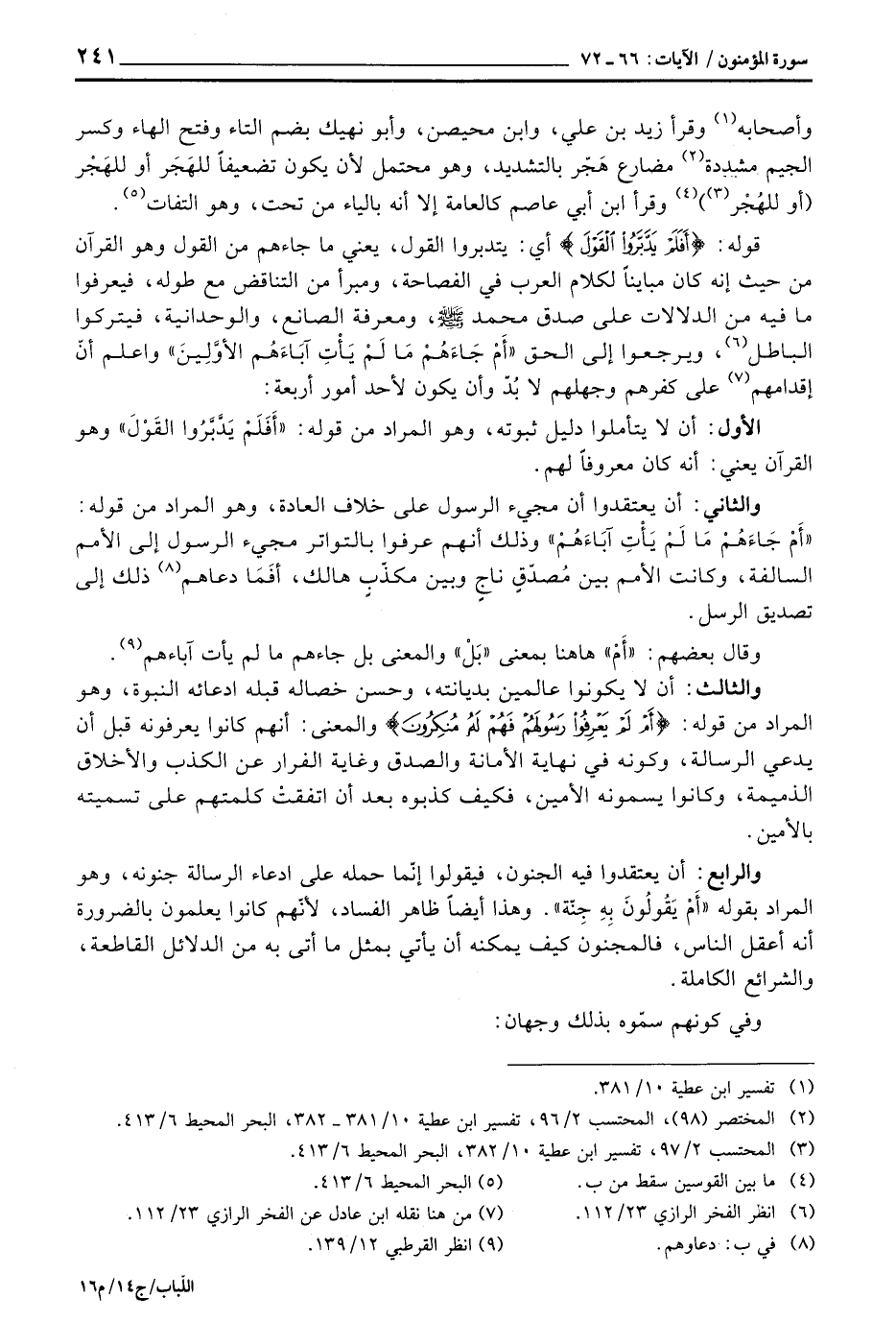 والثاني: أن يعتقدوا أن مجيء الرسول على خلاف العادة، وهو المراد من قوله: {أَمْ جَآءَهُمْ مَّا لَمْ يَأْتِ آبَآءَهُمُ} وذلك أنهم عرفوا بالتواتر مجيء الرسول إلى الأمم السالفة، وكانت الأمم بين مُصدّقٍ ناجٍ وبين مكذّبٍ هالك، أفَمَا دعاهم ذلك إلى تصديق الرسل.