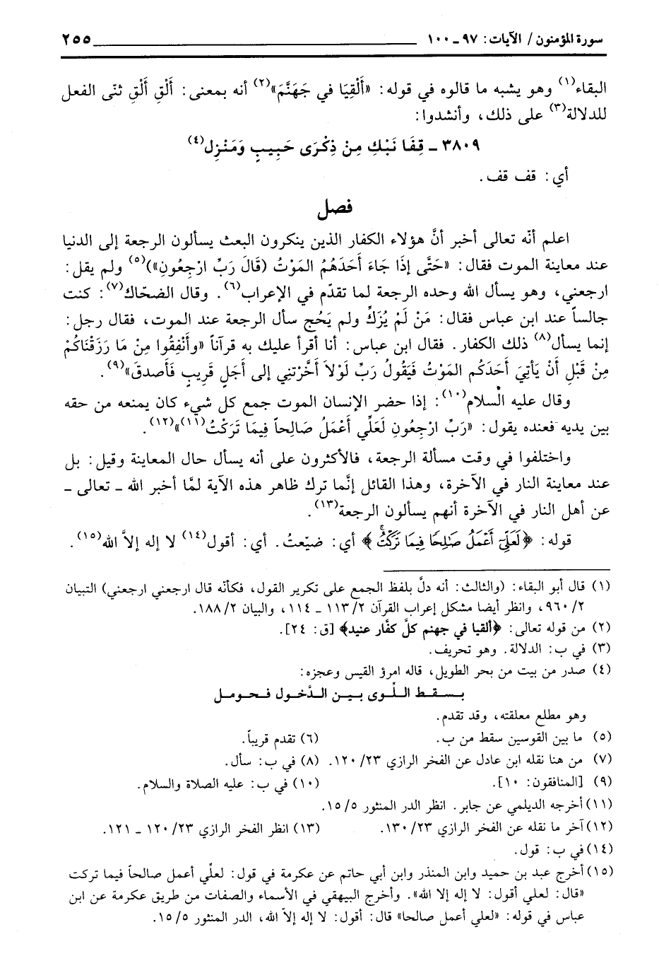 اعلم أنّه تعالى أخبر أنَّ هؤلاء الكفار الذين ينكرون البعث يسألون الرجعة إلى الدنيا عند معاينة الموت فقال: {حتى إِذَا جَآءَ أَحَدَهُمُ الموت (قَالَ رَبِّ ارجعون} ) ولم يقل: ارجعني، وهو يسأل الله وحده الرجعة لما تقدّم في الإعراب. وقال الضحّاك: كنت جالساً عند ابن عباس فقال: مَنْ لَمْ يُزَكِّ ولم يَحُج سأل الرجعة عند الموت، فقال رجل: إنما يسأل ذلك الكفار. فقال ابن عباس: أنا أقرأ عليك به قرآناً {وَأَنفِقُواْ مِن مَّا رَزَقْنَاكُمْ مِّن قَبْلِ أَن يَأْتِيَ أَحَدَكُمُ الموت فَيَقُولُ رَبِّ لولاا أخرتني إلى أَجَلٍ قَرِيبٍ فَأَصَّدَّقَ} [المنافقون: 10] .