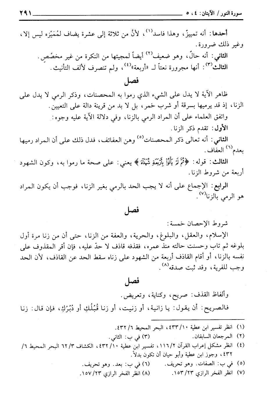 واتفق العلماء على أن المراد الرمي بالزنا، وفي دلالة الآية عليه وجوه: