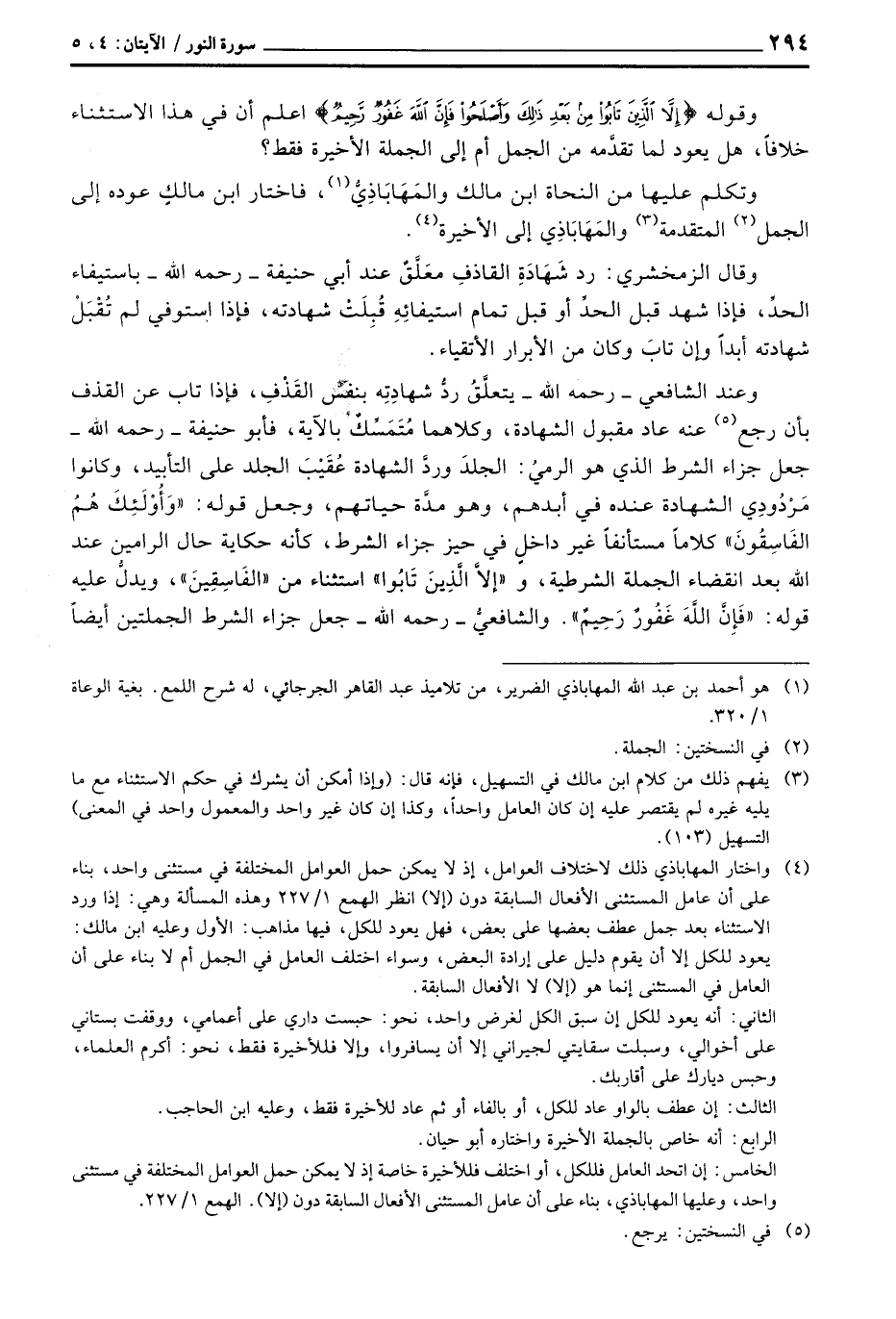 وتكلم عليها من النحاة ابن مالك والمَهَابَاذِيُّ، فاختار ابن مالكٍ عوده إلى الجمل المتقدمة والمَهَابَاذِي إلى الأخيرة.