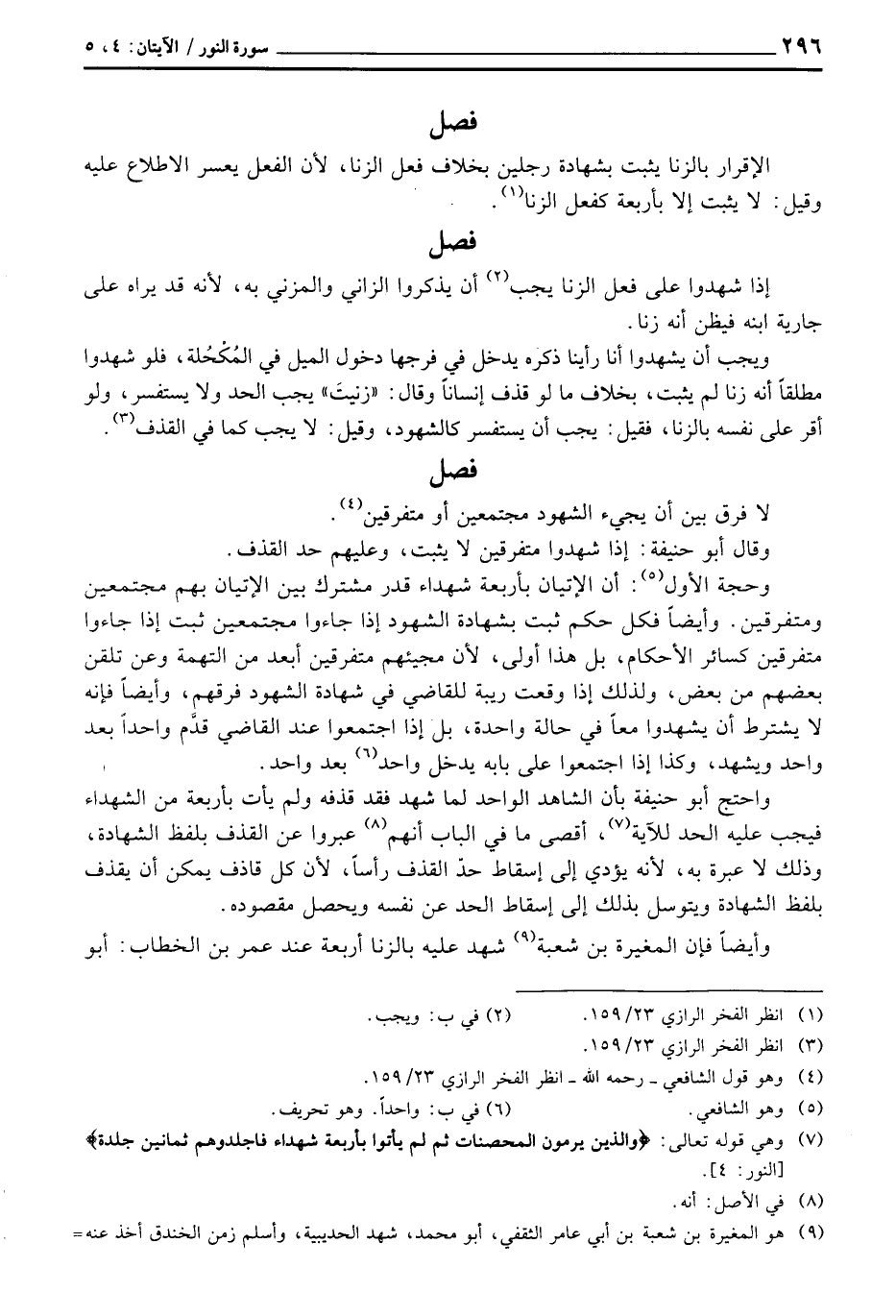 وأيضاً فإن المغيرة بن شعبة شهد عليه بالزنا أربعة عند عمر بن الخطاب: أبو