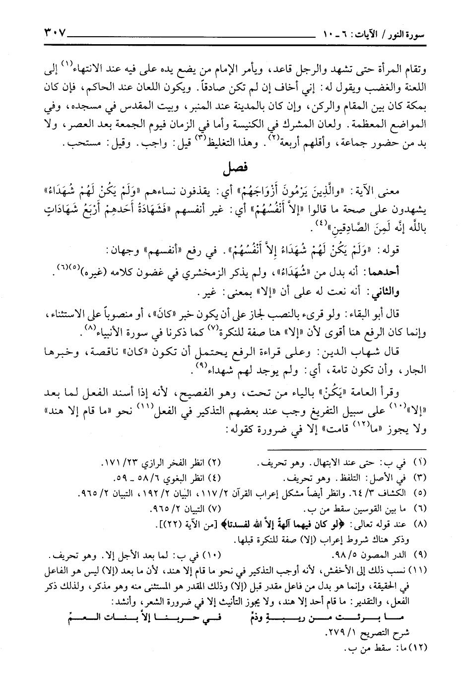 قوله: {وَلَمْ يَكُنْ لَّهُمْ شُهَدَآءُ إِلاَّ أَنفُسُهُمْ} . في رفع «أنفسهم» وجهان: