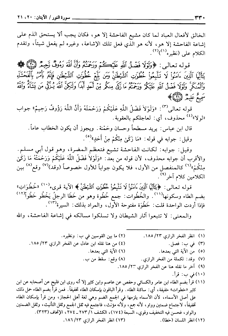 قوله تعالى: {يا أيها الذين آمَنُواْ لاَ تَتَّبِعُواْ خُطُوَاتِ الشيطان} الآية قرئ «خُطُوَاتِ» بضم الطاء وسكونها. والخُطُوات: جمع خُطْوة وهو من خَطَا الرجلُ يَخْطُوا خَطْواً فإذا أردت الواحدة قلت: خَطْوَة مفتوحة الأول، والمراد بذلك: السيرة.