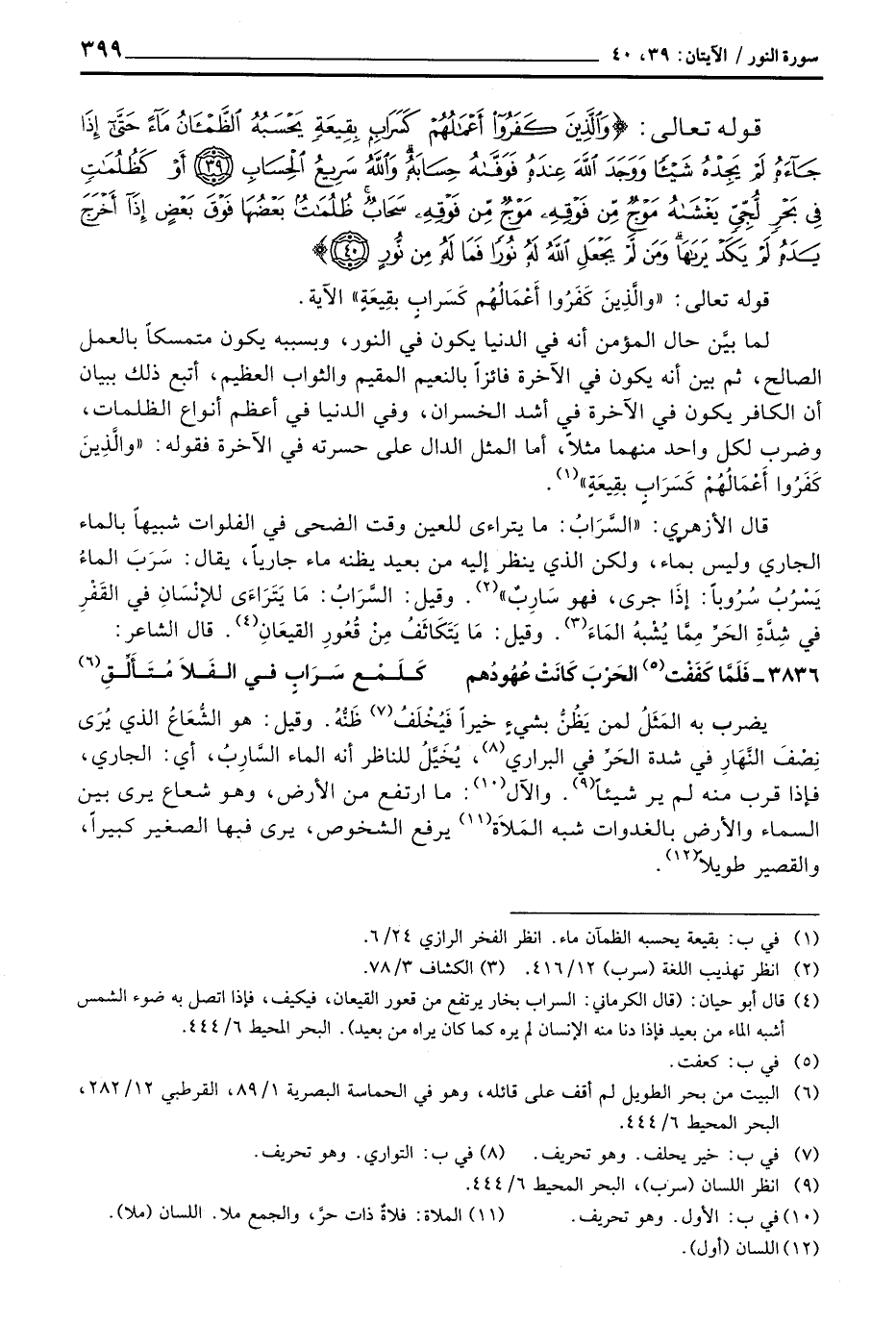 قوله تعالى: {والذين كفروا أَعْمَالُهُمْ كَسَرَابٍ بِقِيعَةٍ} الآية.