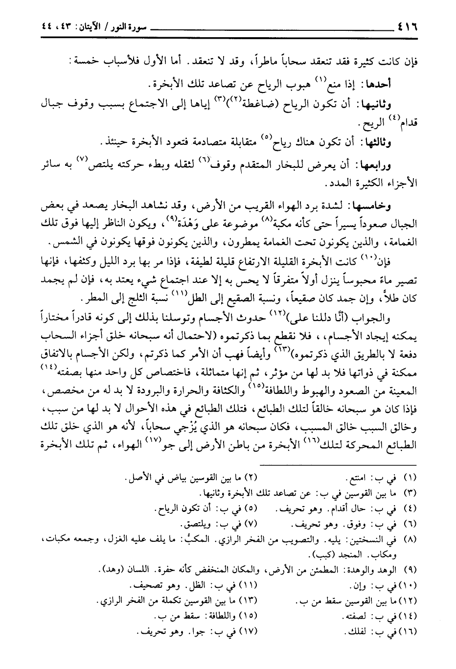 فإن كانت كثيرة فقد تنعقد سحاباً ماطراً، وقد لا تنعقد. أما الأول فلأسباب خمسة: