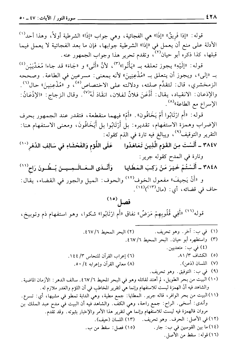 قوله: {أَمِ ارتابوا أَمْ يَخَافُونَ} . «أَمْ» فيهما منقطعة، فتقدر عند الجمهور بحرف الإضراب وهمزة الاستفهام، تقديره: بل أَرْتَابُوا بل أَيَخَافُونَ، ومعنى الاستفهام هنا: التقرير والتوقيف، ويبالغ فيه تارة في الذم كقوله: