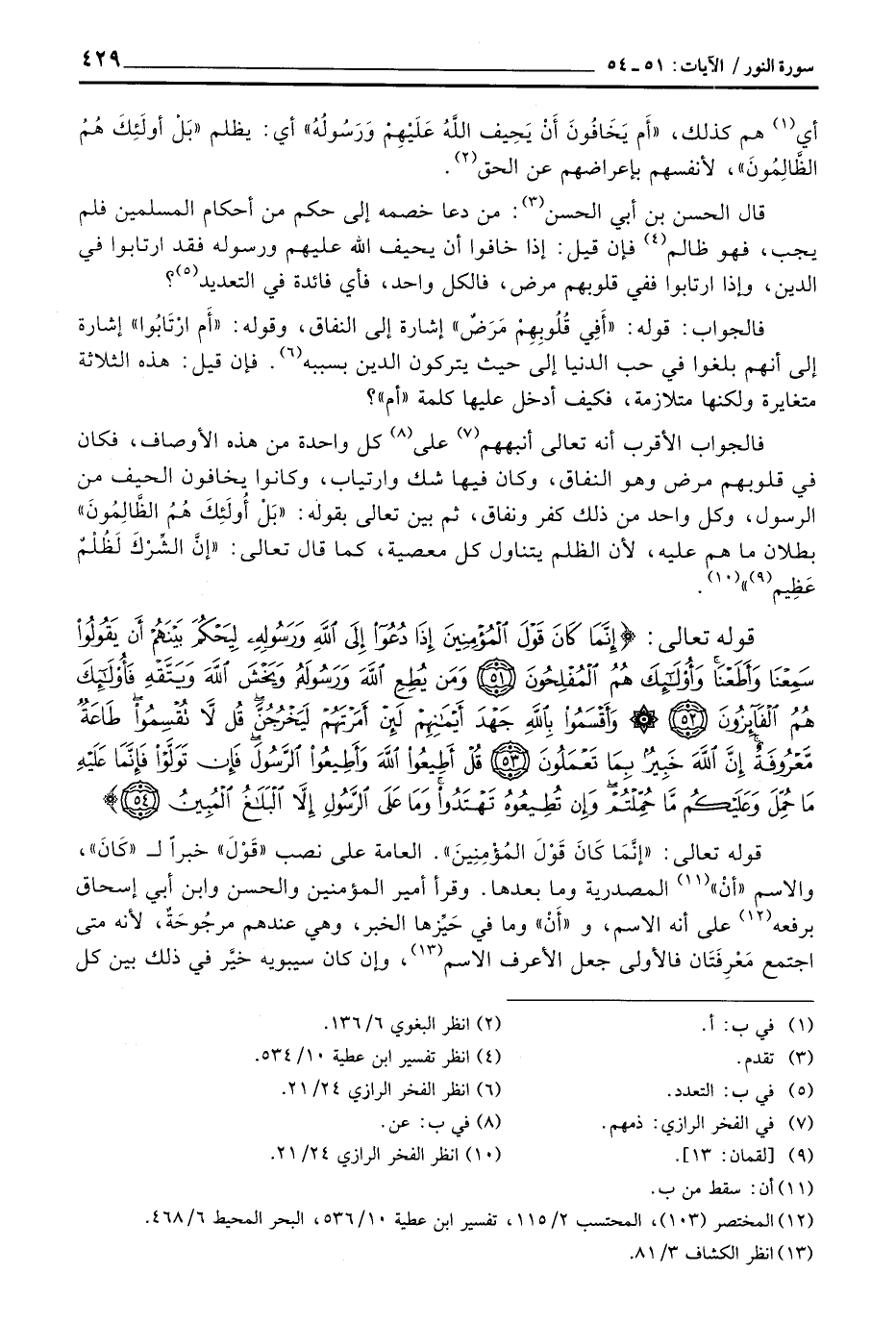 قال الحسن بن أبي الحسن: من دعا خصمه إلى حكم من أحكام المسلمين فلم يجب، فهو ظالم فإن قيل: إذا خافوا أن يحيف الله عليهم ورسوله فقد ارتابوا في الدين، وإذا ارتابوا ففي قلوبهم مرض، فالكل واحد، فأي فائدة في التعديد؟