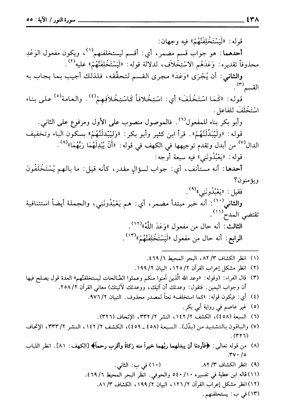قوله: «ولَيُبَدِّلَنَّهُمْ» . قرأ ابن كثير وأبو بكر: «وَليُبْدلَنَّهُمْ» بسكون الباء وتخفيف الدال من أبدل وتقدم توجيهها في الكهف في قوله: {أَن يُبْدِلَهُمَا رَبُّهُمَا} [الكهف: 81] .