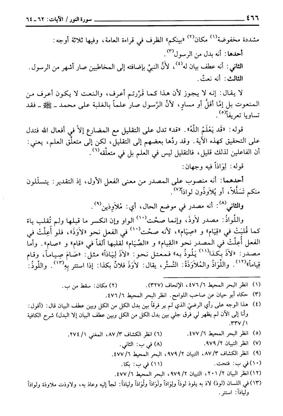 أحدهما: أنه منصوب على المصدر من معنى الفعل الأول، إذ التقدير: يتسلّلون منكم تَسَلُّلاً، أو يُلاَذُون لواذاً.