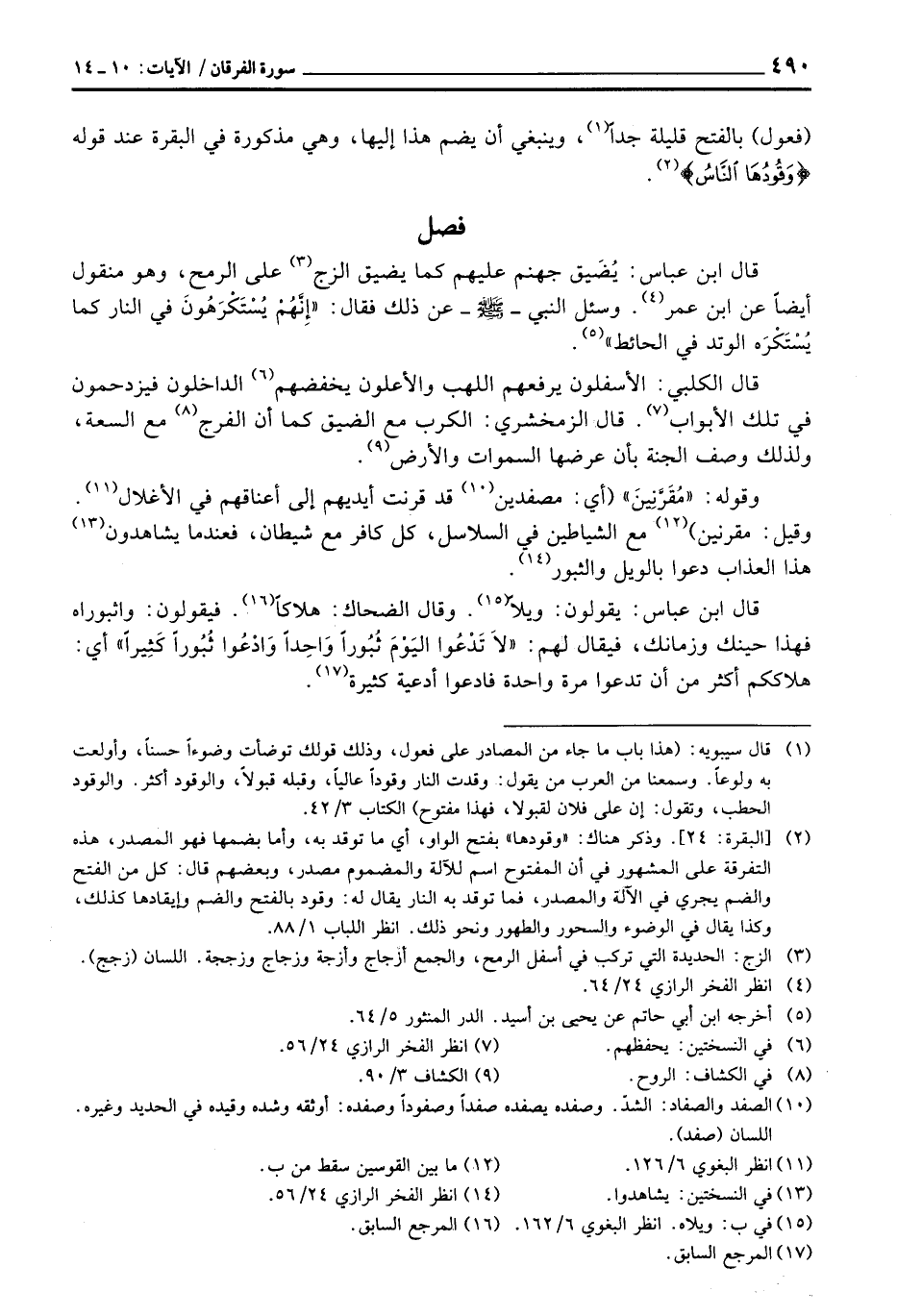 وقوله: «مُقَرَّنِينَ» (أي: مصفدين قد قرنت أيديهم إلى أعناقهم في الأغلال. وقيل: مقرنين) مع الشياطين في السلاسل، كل كافر مع شيطان، فعندما يشاهدون هذا العذاب دعوا بالويل والثبور.