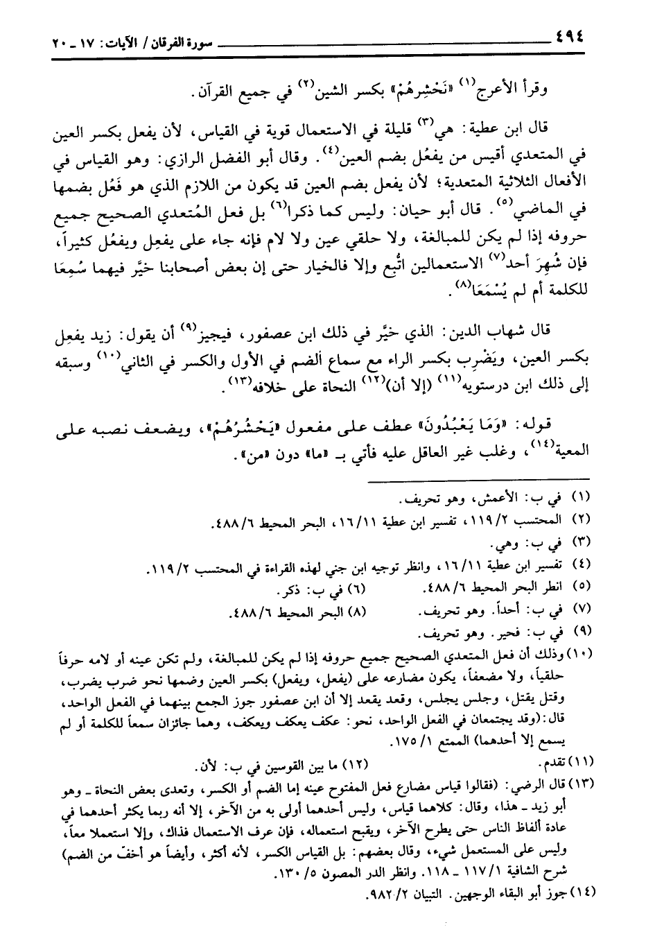 قال ابن عطية: هي قليلة في الاستعمال قوية في القياس، لأن يفعل بكسر العين في المتعدي أقيس من يفعُل بضم العين. وقال أبو الفضل الرازي: وهو القياس في الأفعال الثلاثية المتعدية؛ لأن يفعل بضم العين قد يكون من اللازم الذي هو فَعُل بضمها في الماضي. قال أبو حيان: وليس كما ذكرا بل فعل المُتعدي الصحيح جميع حروفه إذا لم يكن للمبالغة، ولا حلقي عين ولا لام فإنه جاء على يفعِل ويفعُل كثيراً، فإن شُهِرَ أحد الاستعمالين اتُّبع وإلا فالخيار حتى إن بعض أصحابنا خيَّر فيهما سُمِعَا للكلمة أم لم يُسْمَعَا.