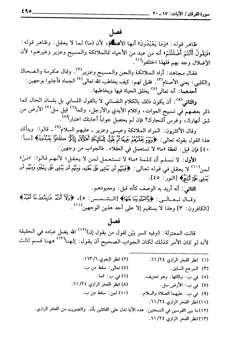 الأول: لا نسلم أن كلمة «ما» لا تستعمل لمن لا يعقل؛ لأنهم قالوا: «مَنْ» لمن لا يعقل في قوله تعالى: {فَمِنْهُمْ مَّن يَمْشِي على بَطْنِهِ وَمِنهُمْ مَّن يَمْشِي على رِجْلَيْنِ وَمِنْهُمْ مَّن يَمْشِي على أَرْبَعٍ} [النور: 45] .
