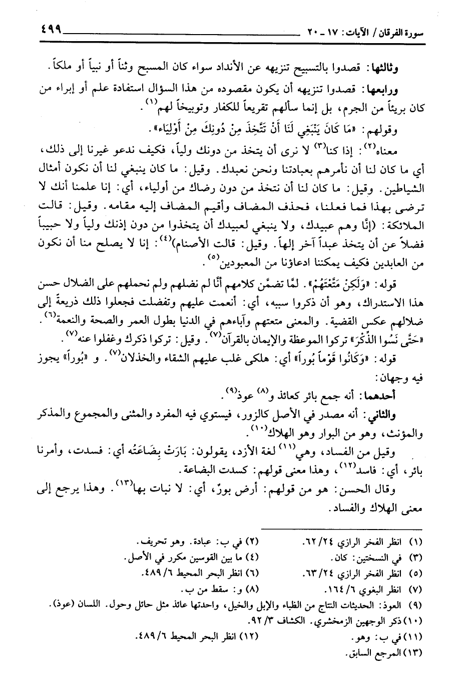 قوله: {وَكَانُواْ قَوْماً بُوراً} أي: هلكى غلب عليهم الشقاء والخذلان. و «بُوراً» يجوز فيه وجهان: