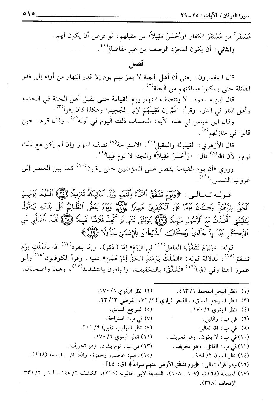قال ابن مسعود: لا ينتصف النهار يوم القيامة حتى يقيل أهل الجنة في الجنة، وأهل النار في النار، وقرأ: «ثُمَّ إن مَقِيلَهُمْ لإلى الجَحِيمِ» وهكذا كان يقرأ.