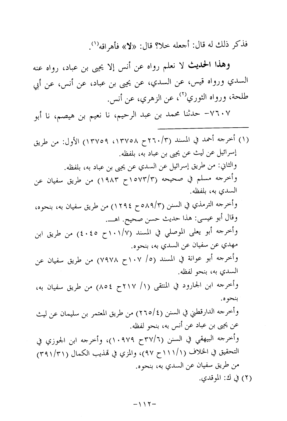 7607- حَدَّثنا مُحَمد بن عَبد الرحيم، حَدَّثنا نعيم بن هيصم، حَدَّثنا أَبُو عَوَانة، عَن أبي يعفور قال: سألت أنسا عن المسح على الخفين فَقَالَ: كَانَ رَسُولُ اللَّهِ صَلَّى اللَّهُ عَلَيه وَسَلَّم يمسح عليهما.