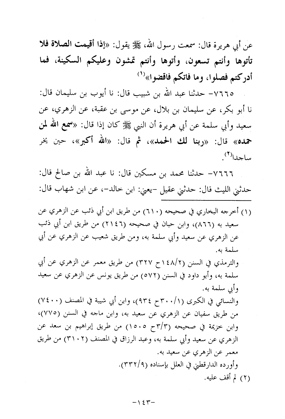 7665- حَدَّثنا عَبد الله بن شَبِيب، قَال: حَدَّثنا أيوب بن سُلَيْمان، قَال: حَدَّثنا أَبْو بَكْر، عَن سُليمان بن بلال عَنْ مُوسَى بْنِ عُقْبَةَ، عَن الزُّهْرِيّ، عَن سَعِيد، وَأَبي سَلَمة، عَن أبي هُرَيرة؛ أَنَّ النَّبِيّ صَلَّى اللَّهُ عَلَيه وَسَلَّم كَانَ إِذَا قَالَ: سَمِعَ اللَّهُ لِمَنْ حَمِدَهُ قَالَ: ربنا لك الحمد، ثُمَّ قال: الله أكبر , حين يخر ساجدا.