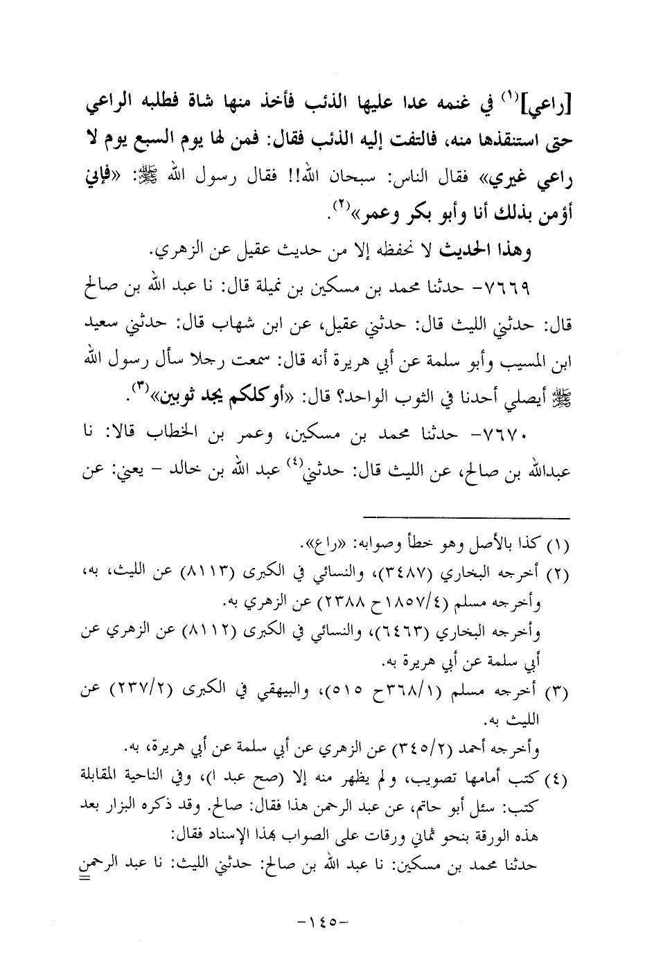 7669- حَدَّثنا مُحَمد بن مسكين بن نميلة قال: حَدَّثناعبد الله بن صالح قال: حدثني اللَّيْث قال: حدثني عُقَيل، عَن ابن شِهاب قال: حدثني سَعِيد بن الْمُسَيَّب، وَأبُو سلمة، عَن أبي هُرَيرة؛ أنه قال: سَمِعْتُ رجلاً سَأَلَ رَسُولُ اللَّهِ صَلَّى اللَّهُ عَلَيه وَسَلَّم أيصلي أحدنا في الثوب الواحد؟ قال: أوكلكم يجد ثوبين.