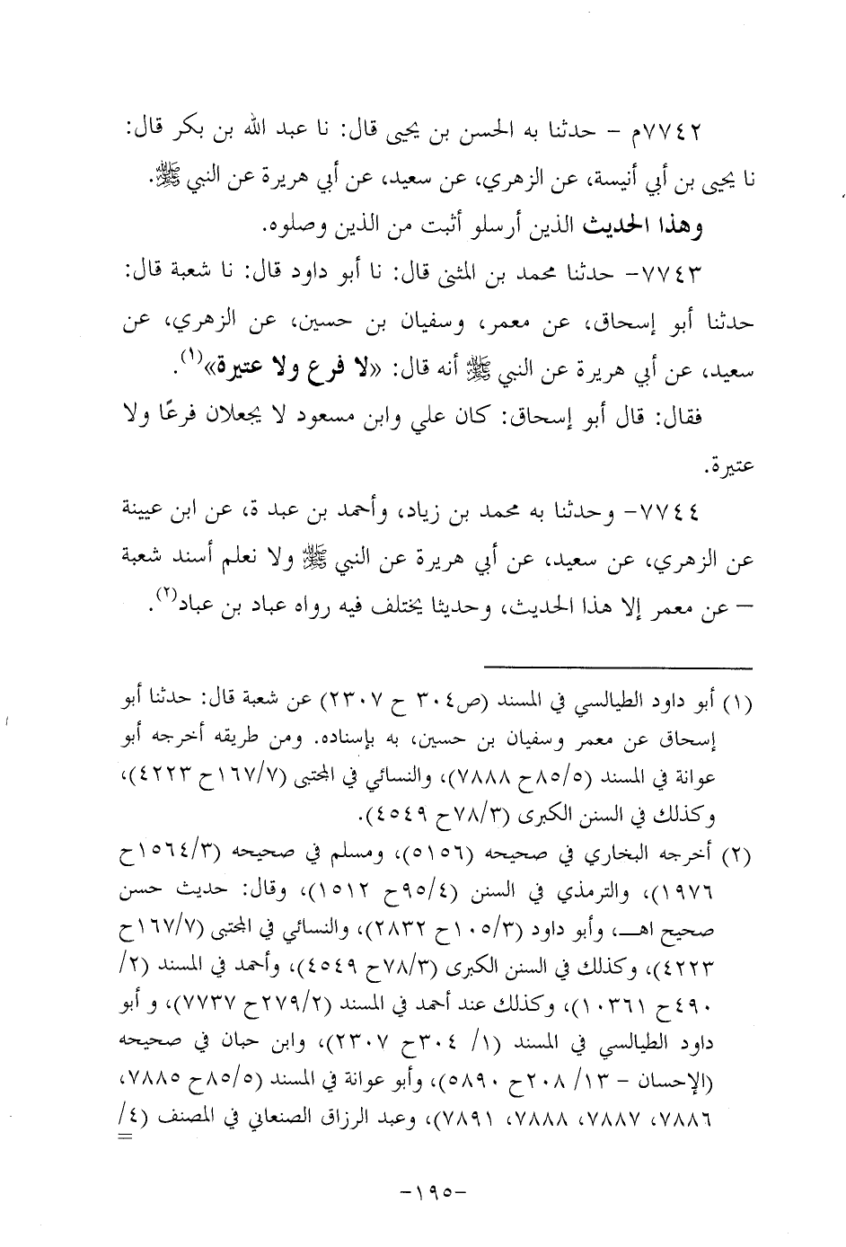 7744- وحَدَّثنا به مُحَمد بن زياد، وَأحمد بن عَبدة، عَن ابن عُيَينة، عَن الزُّهْرِيّ، عَن سَعِيد، عَن أَبِي هُرَيرة، عَن النَّبِيّ صَلَّى اللَّهُ عَلَيه وَسَلَّم.