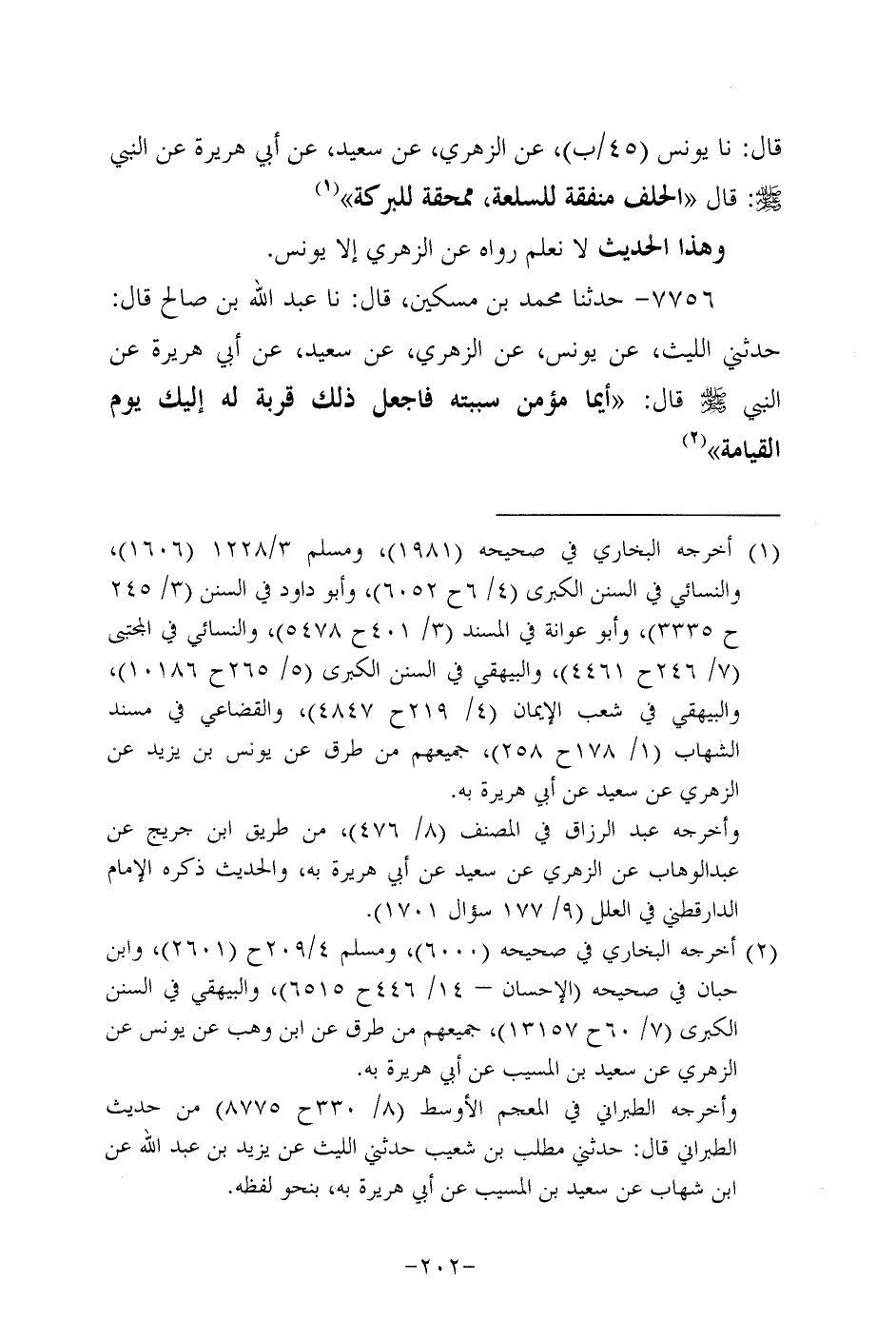 7757- حَدَّثنا به العباس بن جعفر، قَال: حَدَّثنا يعقوب بن إبراهيم، عَن ابْنِ أَخِي الزُّهْرِيّ، عَن الزُّهْرِيّ، عَن سَعِيد، عَن أَبِي هُرَيرة، عَن النَّبِيّ صَلَّى اللَّهُ عَلَيه وَسَلَّم، بنحوه.
