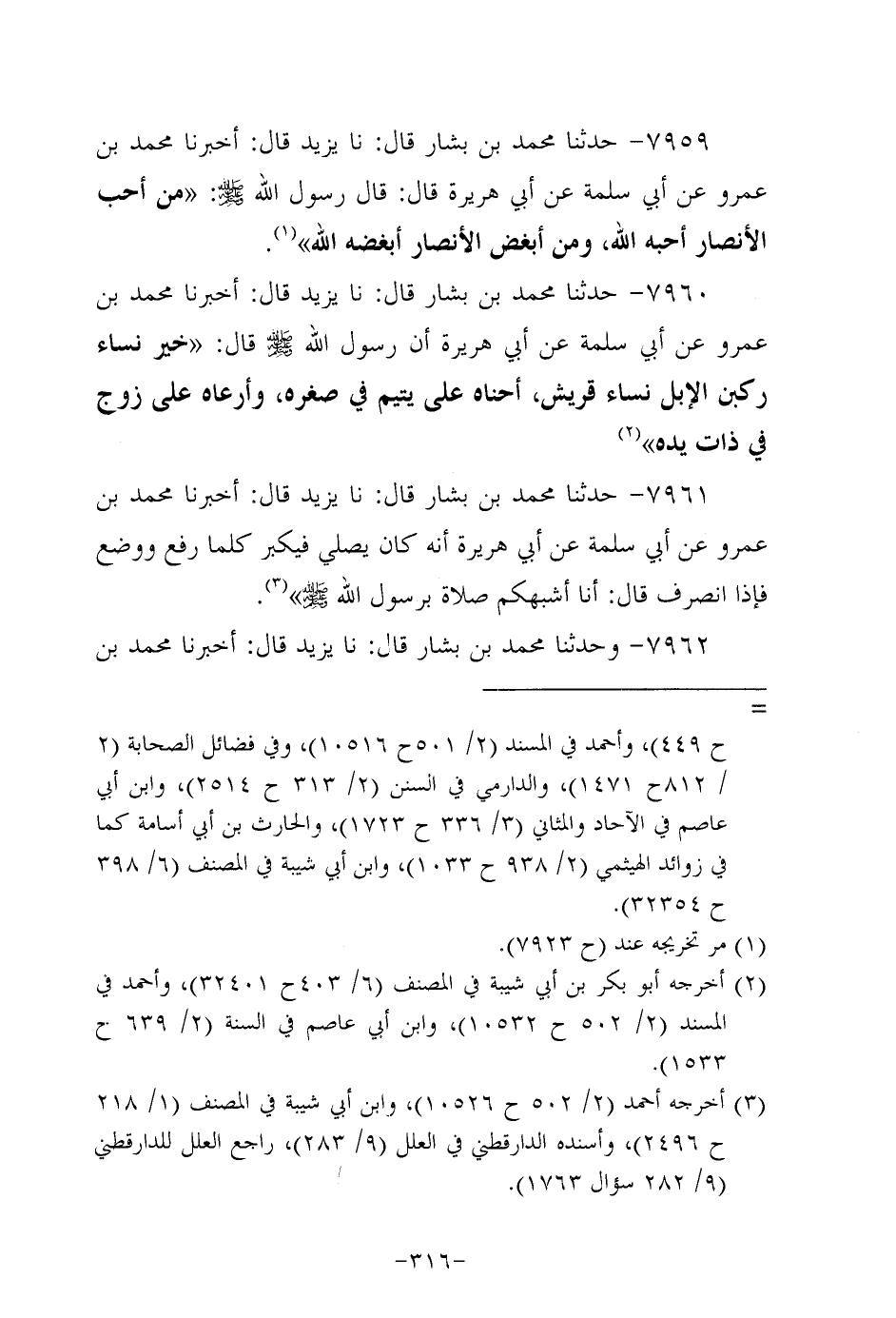 7959- حَدَّثنا مُحَمد بن بَشَّار، قَال: حَدَّثنا يزيد، قال: أَخْبَرنا مُحَمد بن عَمْرو، عَن أبي سَلَمَة، عَن أبي هُرَيرة، قَالَ: قَالَ رَسُول اللهِ صَلَّى اللَّهُ عَلَيه وَسَلَّم: من أحب الأنصار أحبه الله، وَمَنْ أبغض الأنصار أبغضه الله.