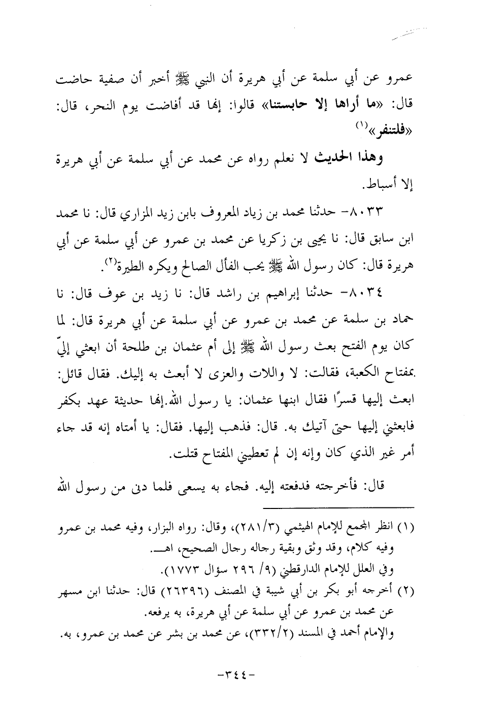 8033- حَدَّثنا مُحَمد بن زياد المعروف بابن زيد المزاري، قَال: حَدَّثنا مُحَمد بن سابق، قَال: حَدَّثنا يحيى بن زكريا عن مُحَمد بن عَمْرو، عَن أبي سَلَمَة عن هُرَيرة قَالَ: كَانَ رَسُولُ اللَّهِ صَلَّى اللَّهُ عَلَيه وَسَلَّم يحب الفأل الصالح ويكره الطيرة.