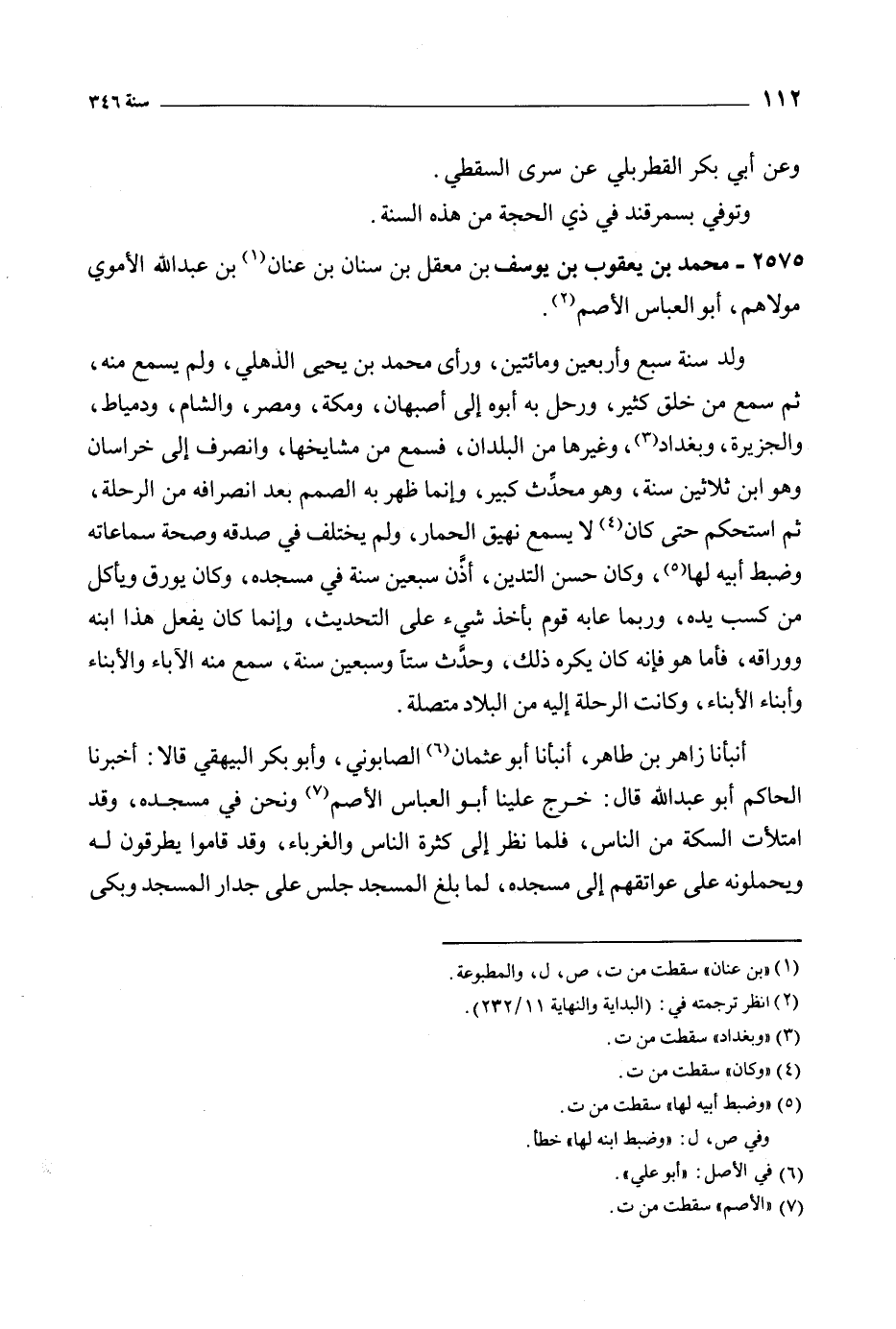 2575- محمد بن يعقوب بن يوسف بن معقل بن سنان بن عنان [1] بن عبد الله الأموي مولاهم، أبو العباس الأصم