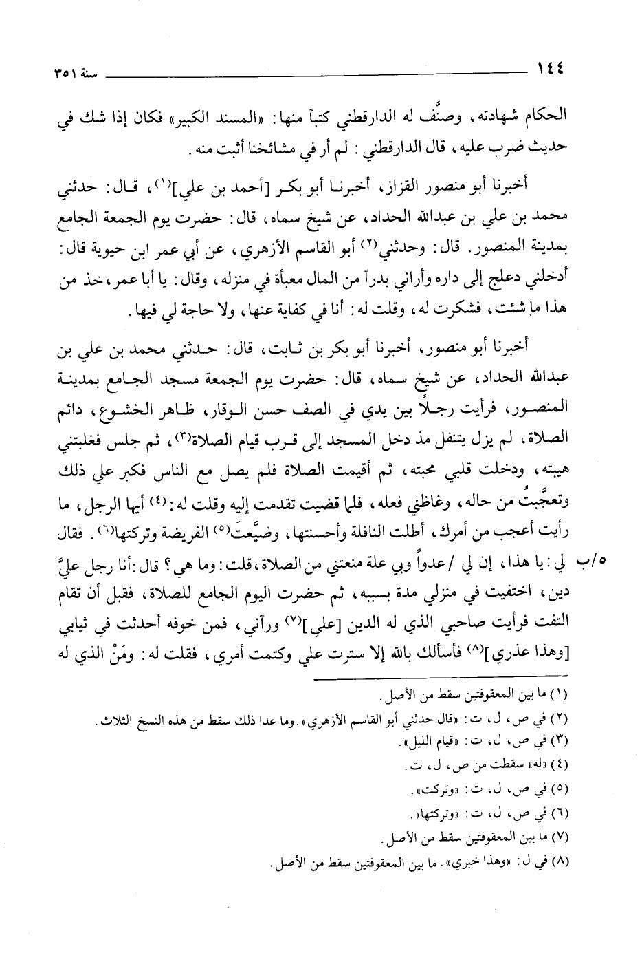 [2] في ص، ل، ت: «قال حدثني أبو القاسم الأزهري» . وما عدا ذلك سقط من هذه النسخ الثلاث.