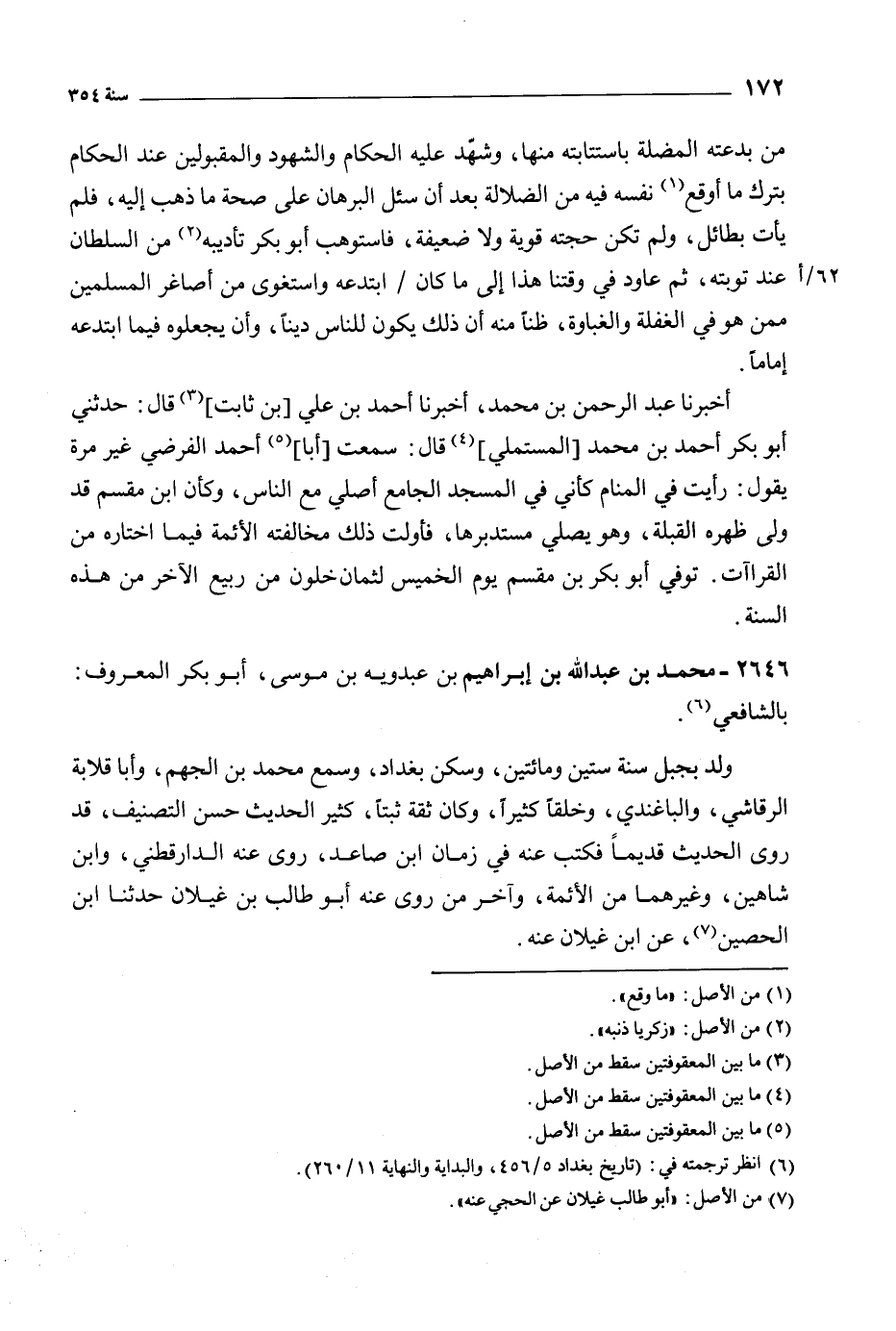 [6] انظر ترجمته في: (تاريخ بغداد 5/ 456، والبداية والنهاية 11/ 260) .