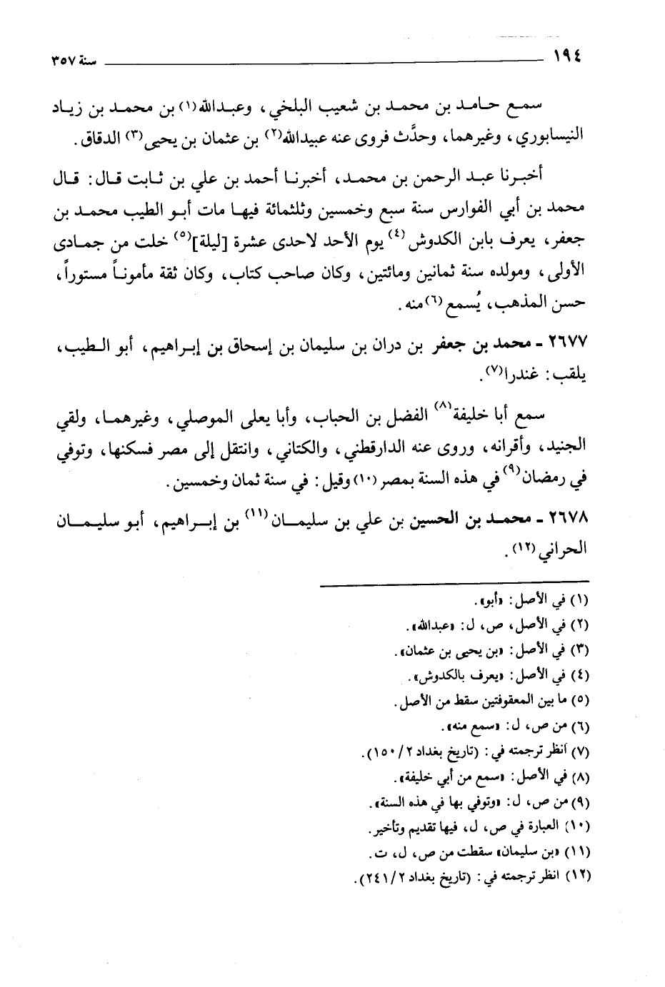 2677- محمد بن جعفر بن دران بن سليمان بن إسحاق بن إبراهيم، أبو الطيب، يلقب: غندرا