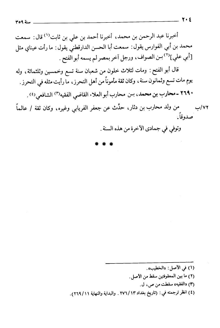 [4] انظر ترجمته في: (تاريخ بغداد 13/ 276. والبداية والنهاية 11/ 269) .