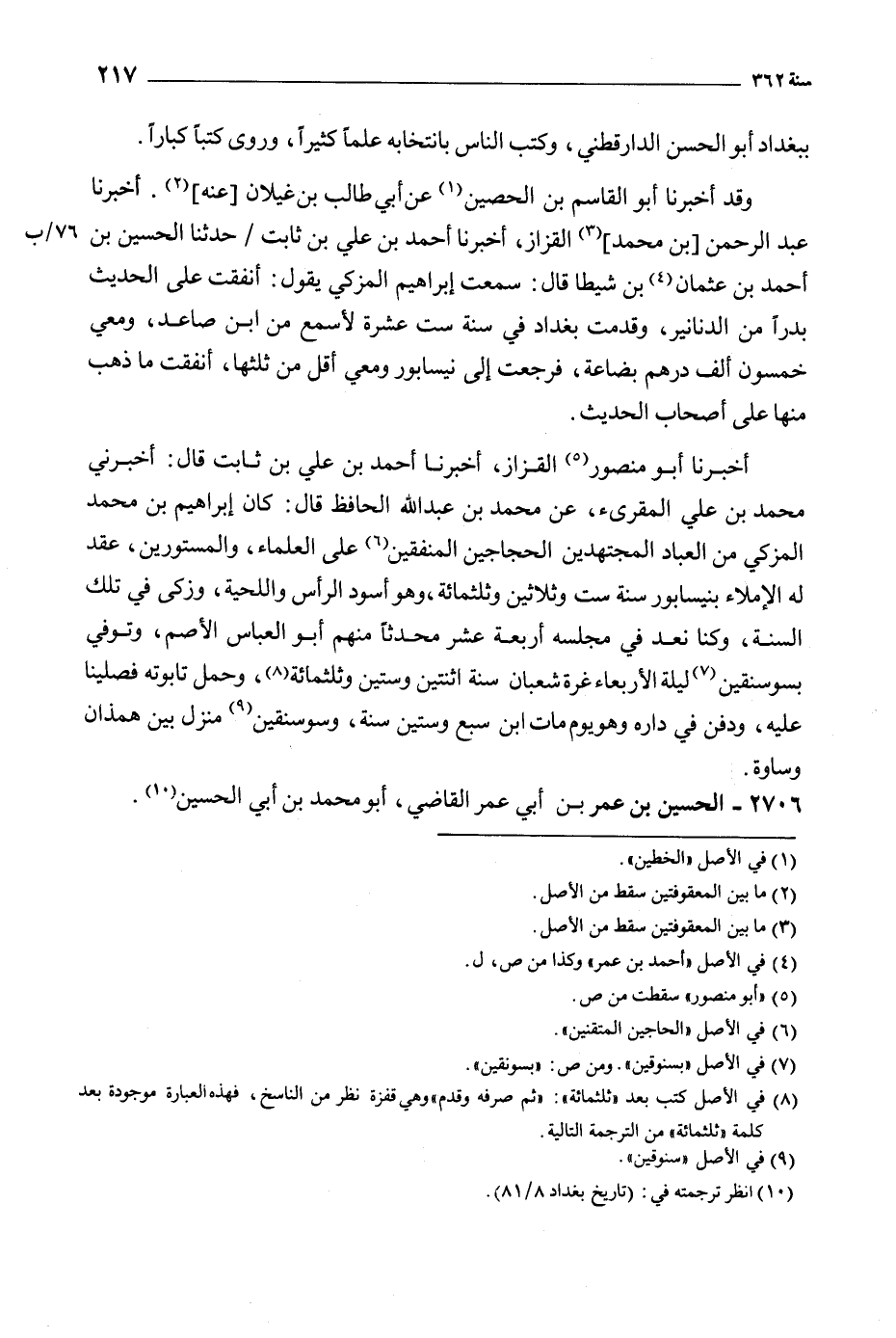[8] في الأصل كتب بعد «ثلاثمائة» : «ثم صرفه وقدم» وهي قفزة نظر من الناسخ، فهذه العبارة موجودة بعد كلمة «ثلاثمائة» من الترجمة التالية.