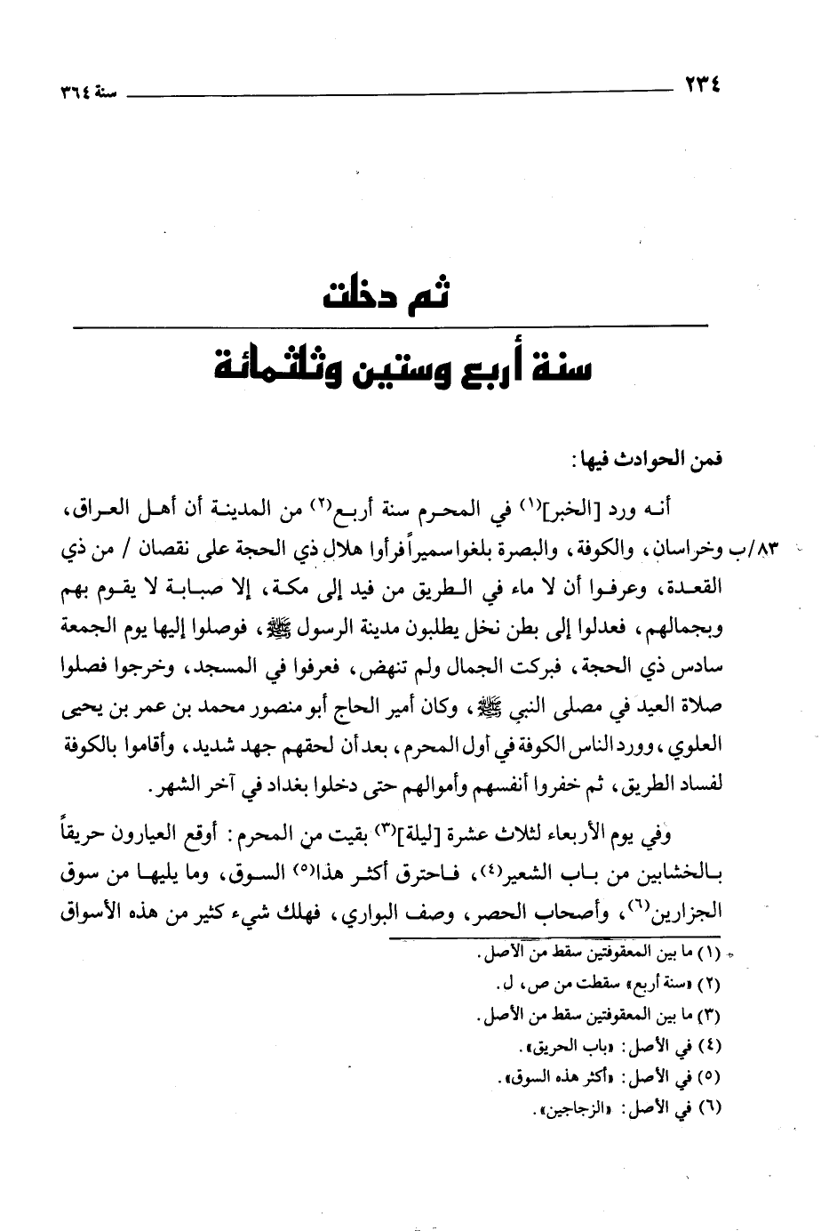 ثم دخلت سنة أربع وستين وثلاثمائة