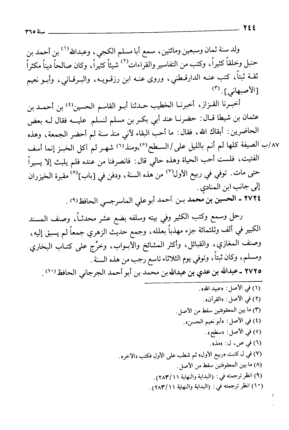 2725- عَبْد اللَّه بْن عَدِيّ بْن عَبْد اللَّه بْن مُحَمَّد بْن أَبُو أَحْمَد الجرجاني الحافظ
