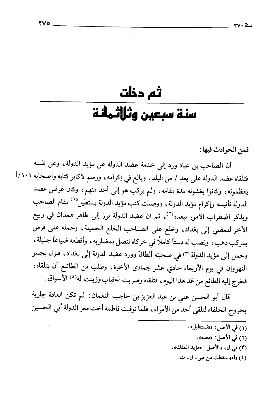 ثم دخلت سنة سبعين وثلاثمائة