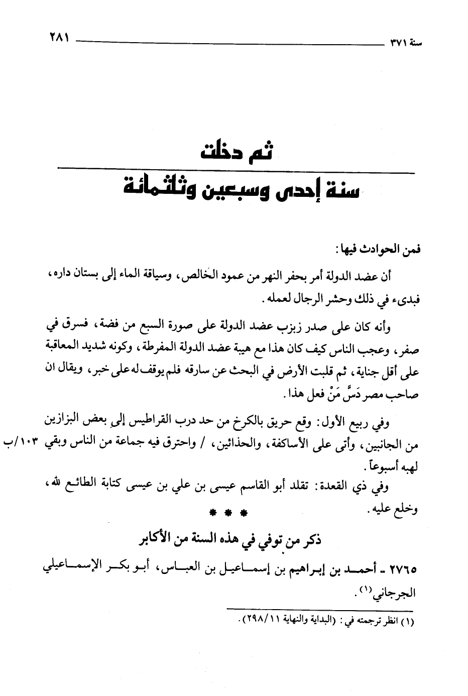 ثم دخلت سنة إحدى وسبعين وثلاثمائة