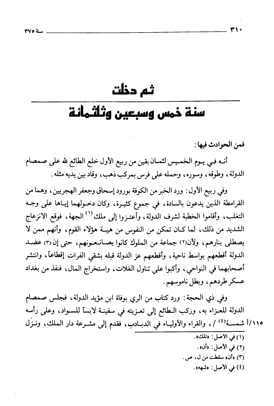 ثم دخلت سنة خمس وسبعين وثلاثمائة