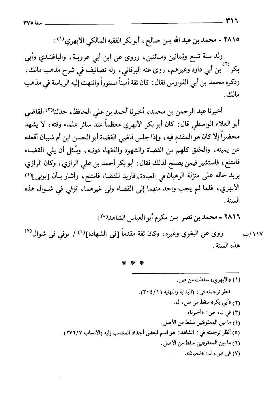 2815- محمد بن عبد الله بن صالح، أبو بكر الفقيه المالكي الأبهري