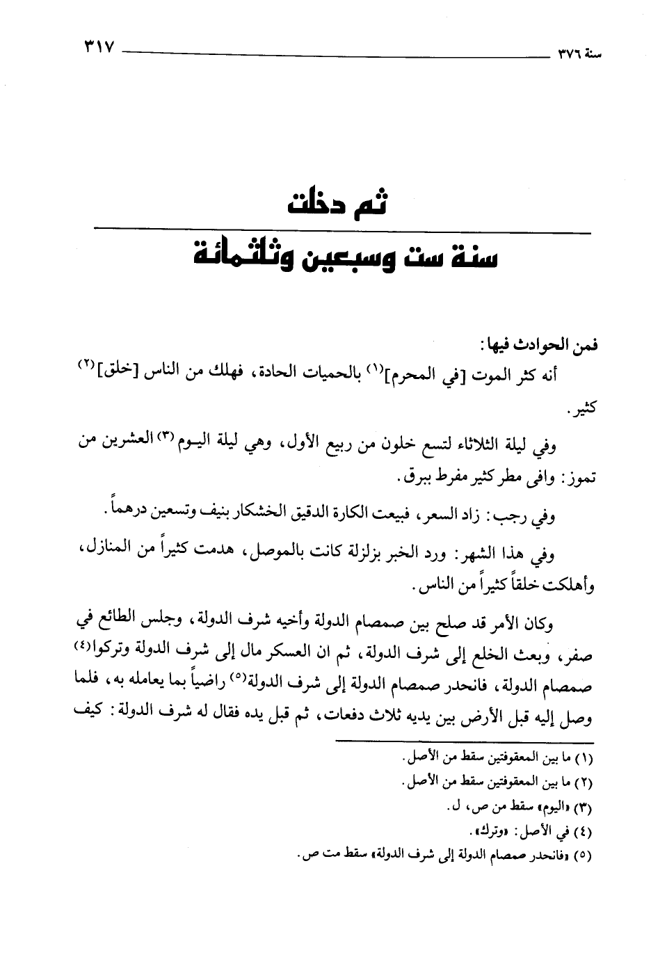 ثم دخلت سنة ست وسبعين وثلاثمائة