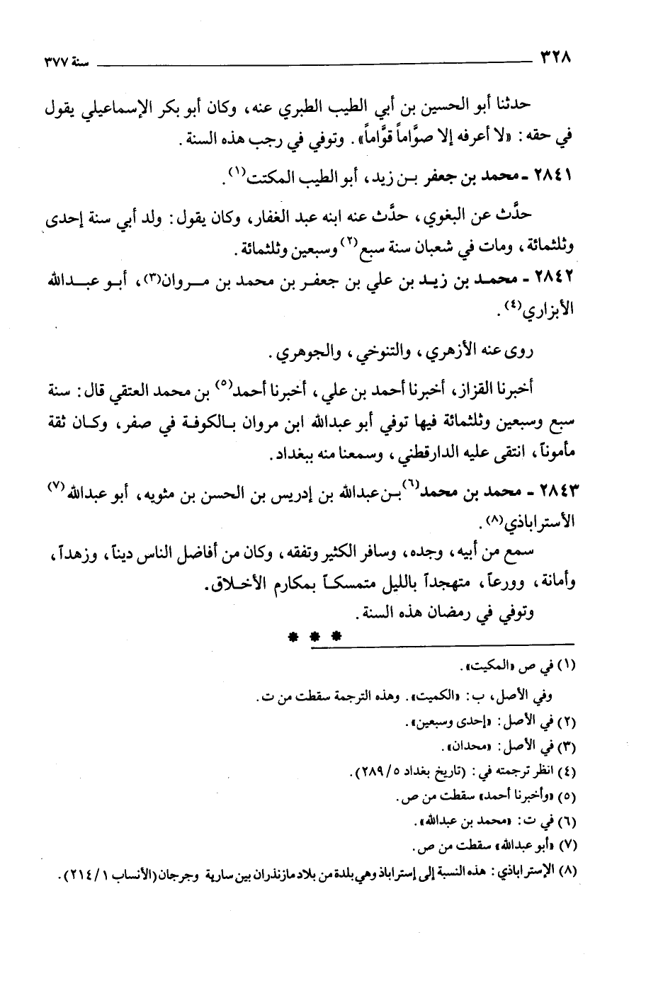 2843- محمد بن محمد [6] بن عبد الله بن إدريس بن الحسن بن متويه، أبو عبد الله [7] الأستراباذي
