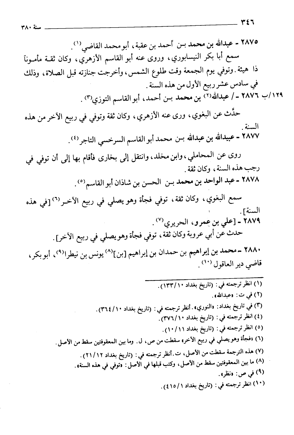 2880- محمد بن إبراهيم بن حمدان بن إبراهيم [بن] [8] يونس بن نيطرا [9] ، أبو بكر، قاضي دير العاقول