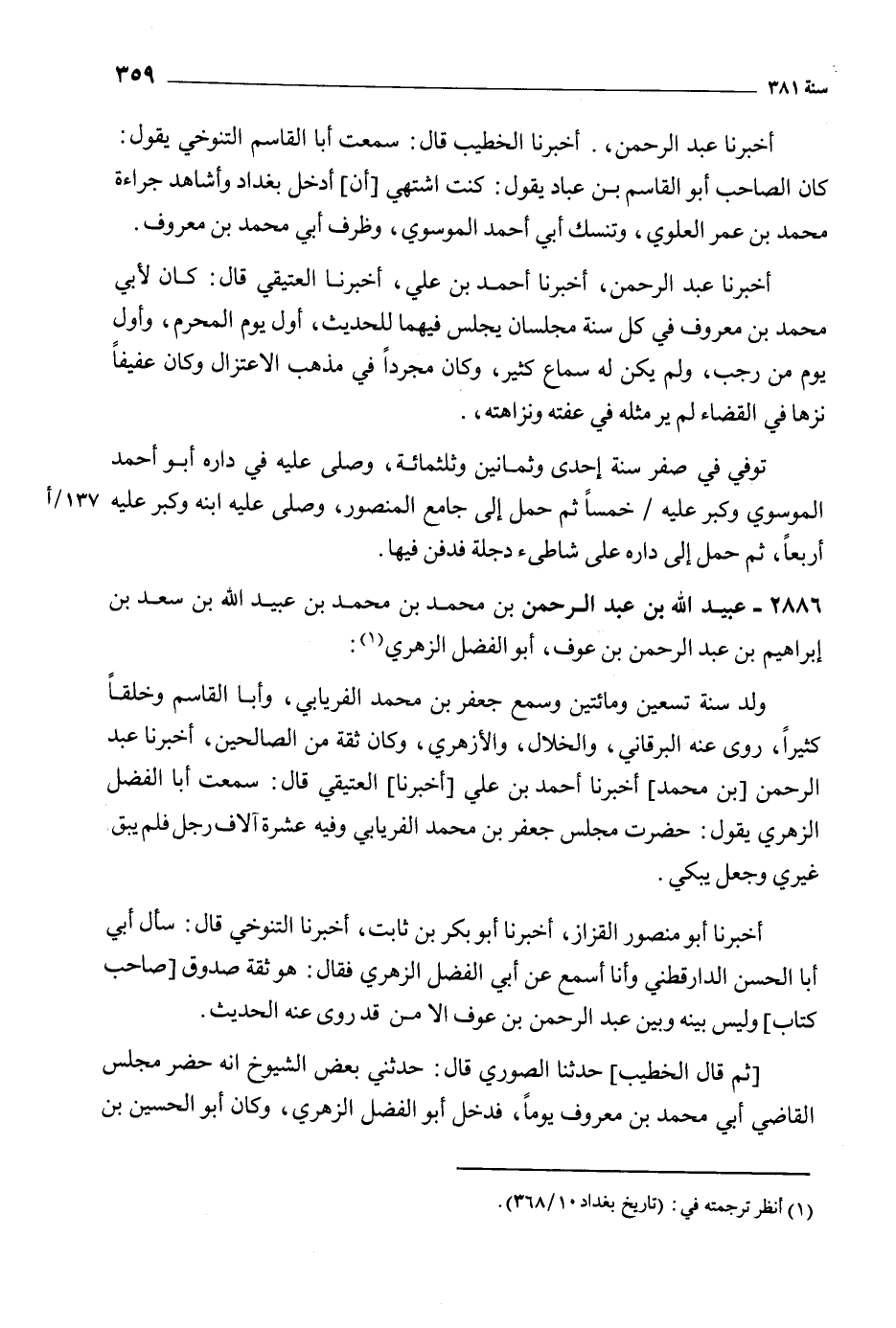 [1] انظر ترجمته في: (تاريخ بغداد 10/ 368) .