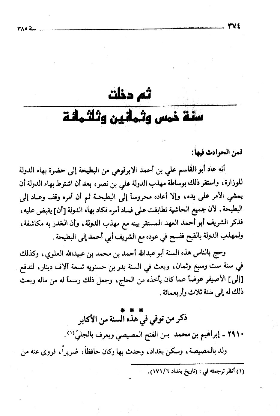 ثم دخلت سنة خمس وثمانين وثلاثمائة