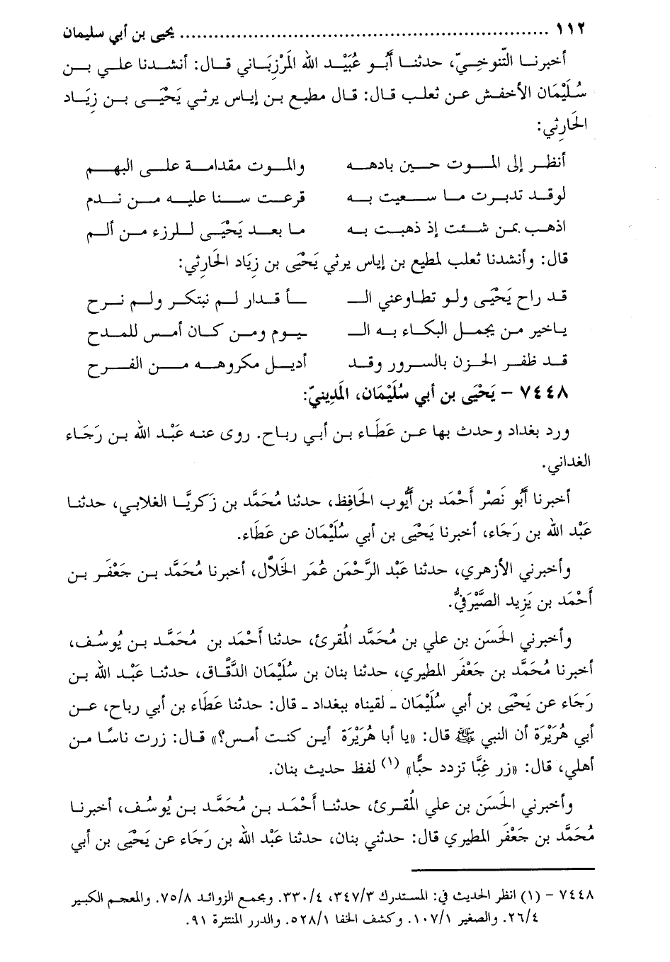 7448- يَحْيَى بْن أبي سُلَيْمَان، الْمَدينيُّ:
