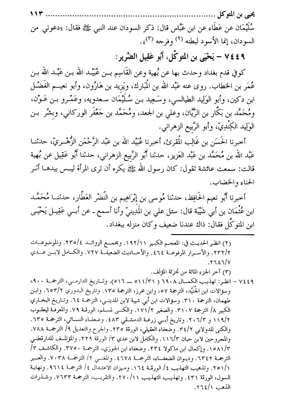 7449- يحيى بن المتوكل، أبو عقيل الضرير [3] :
