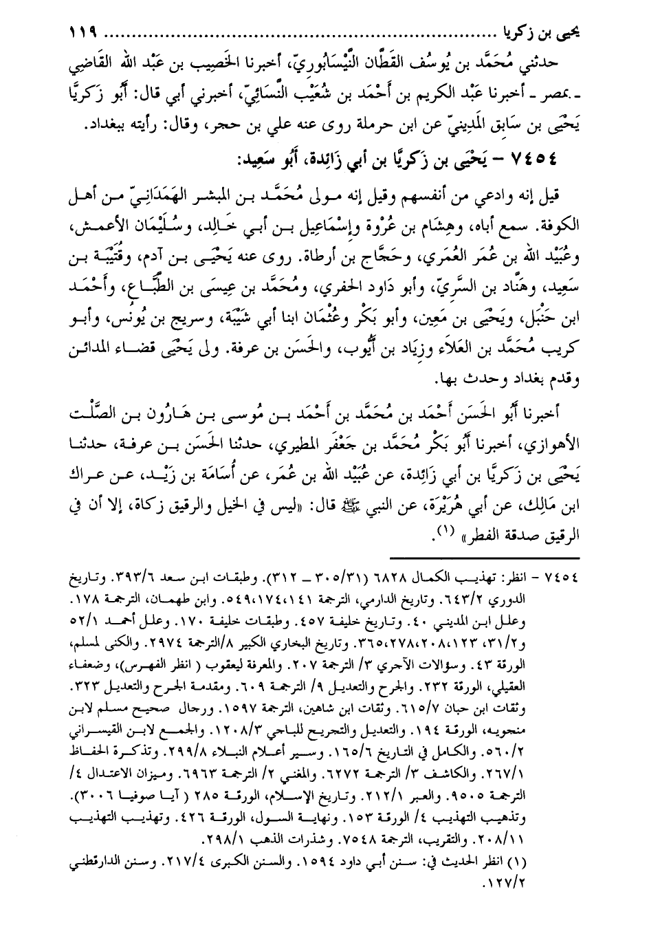 7454- يحيى بن زكريا بن أبي زائدة، أبو سعيد [1] :