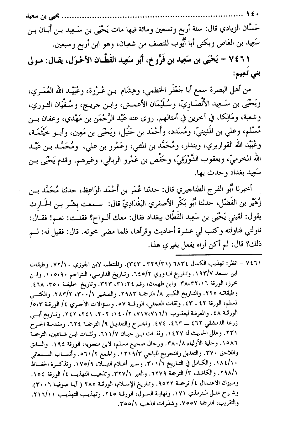 7461- يَحْيَى بْن سَعِيد بْن فَرُّوخ، أَبُو سَعِيد القَطَّان الأحول، يُقال: مولى بَنِي تَمِيم [1] :