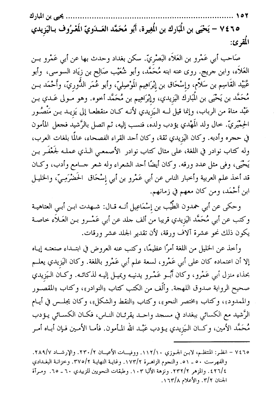 7465- يَحْيَى بْن الْمبارك بْن المغيرة، أَبُو مُحَمَّد العَدَوي المعروف باليزيدي المقرئ [1] :