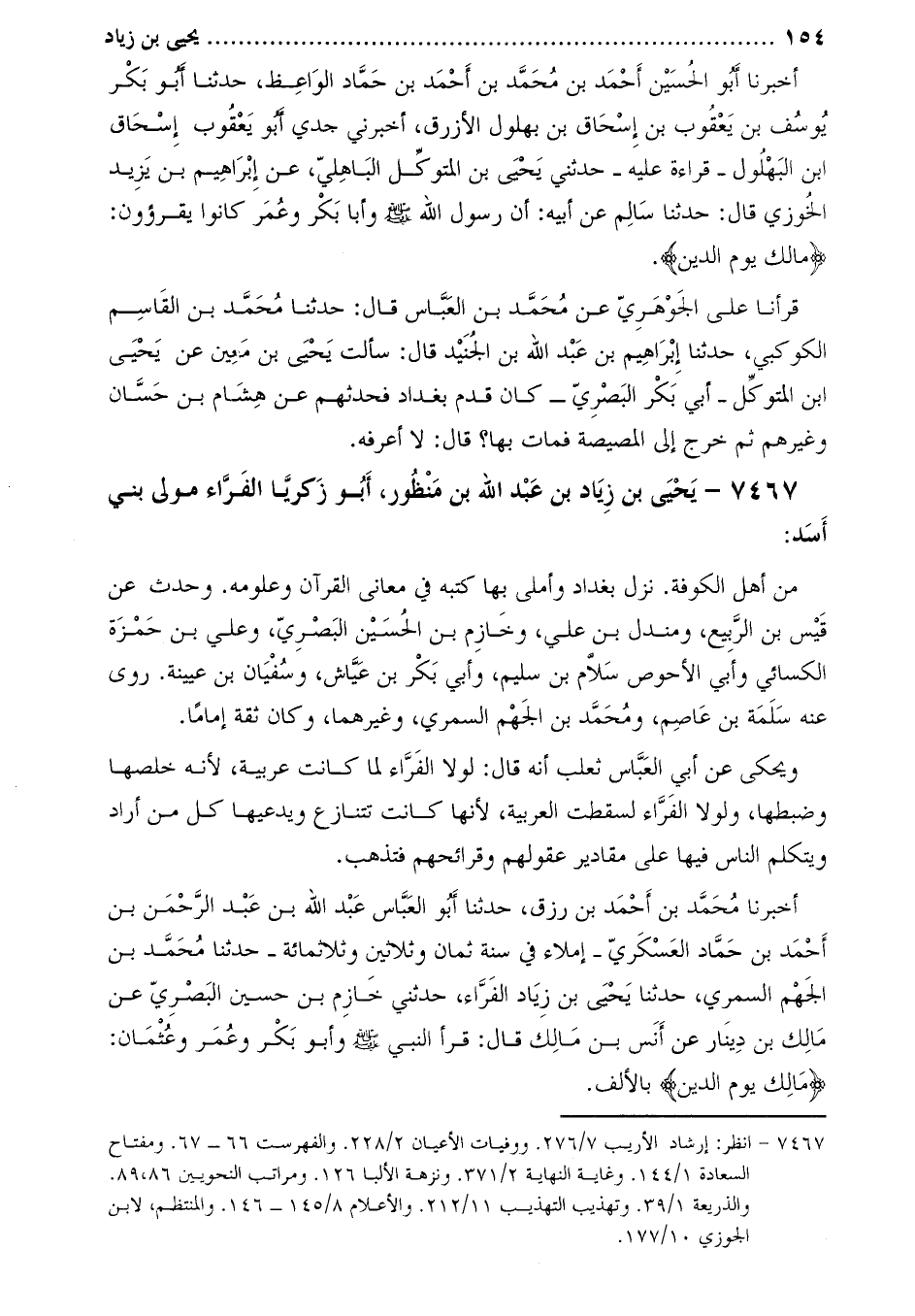 7467- يَحْيَى بْن زياد بْن عَبْد الله بْن منظور، أَبُو زكريا الفَرَّاء مولى بَنِي أسد [1] :