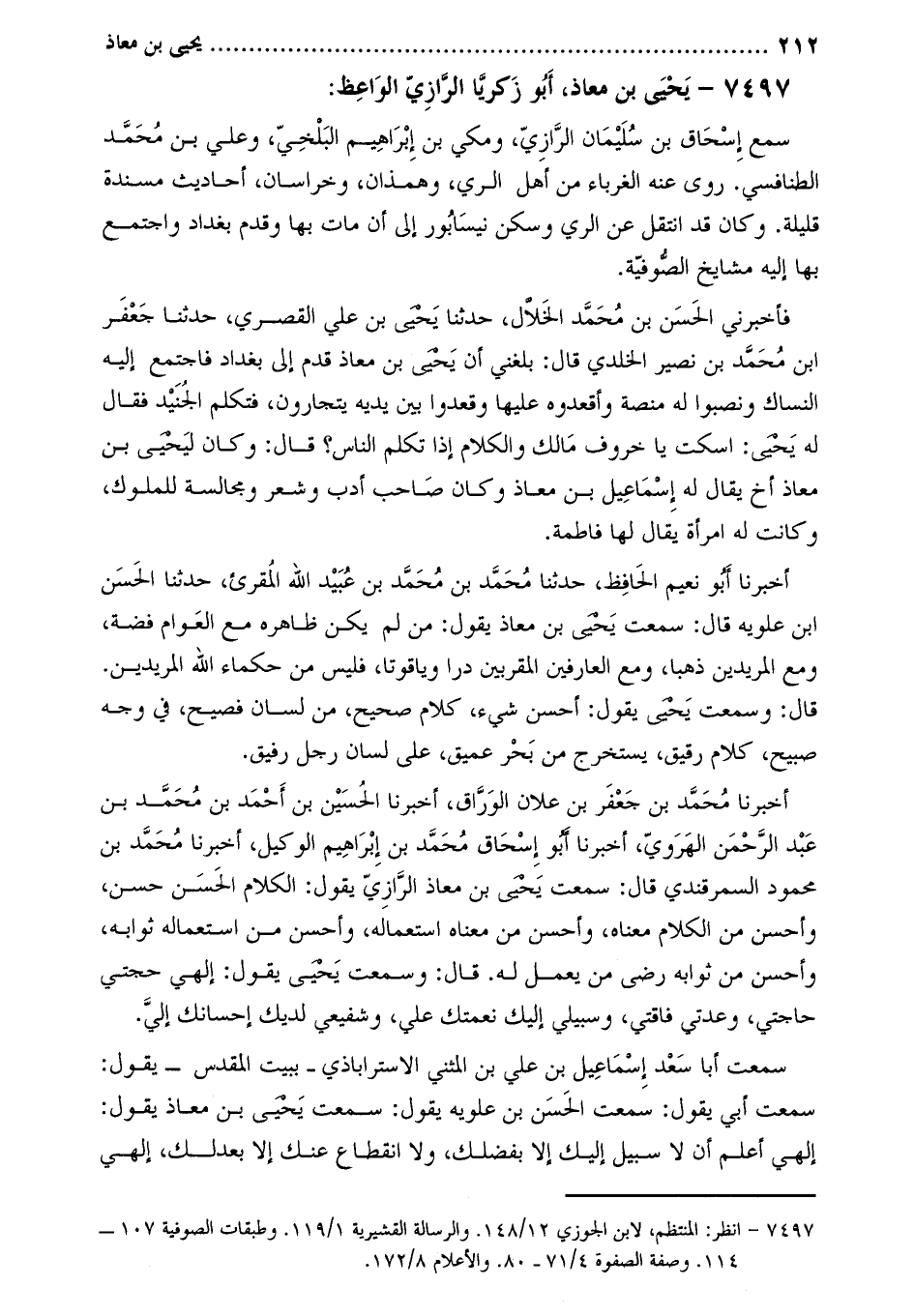 7497- يحيى بن معاذ، أبو زكريا الرازي الواعظ [1] :
