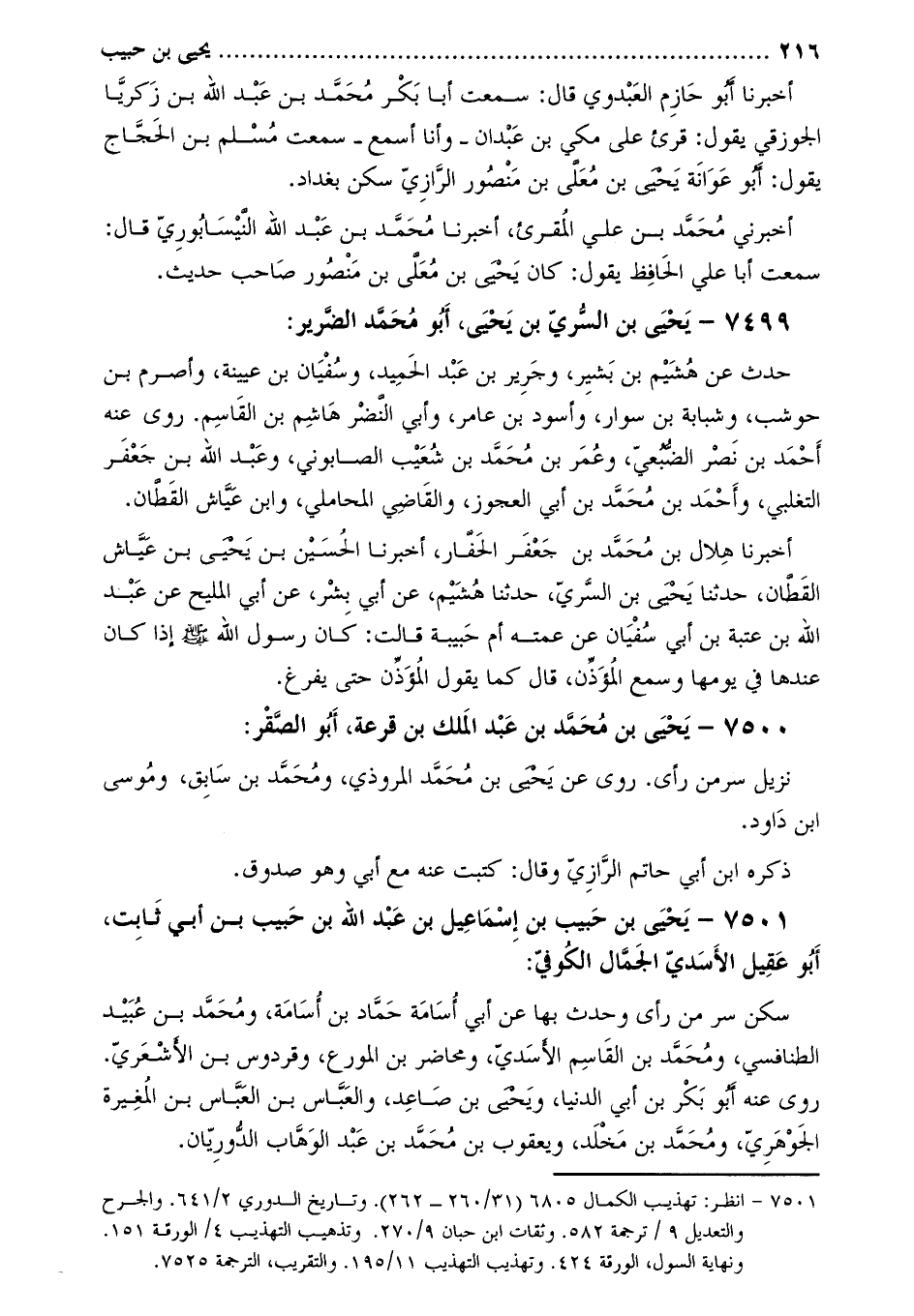 [1] 7501- انظر: تهذيب الكمال 6805 (31/260- 262) . وتاريخ الدّوري 2/641. والجرح والتعديل 9/ترجمة 582. وثقات ابن حبان 9/270. وتذهيب التهذيب 4/الورقة 151.